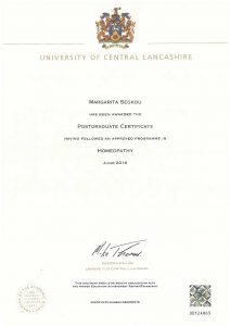 Κάτοχος κλινικής εμπειρίας στην ομοιοπαθητική κλινική της Αγγλίας: The Remedy Centre for Health στο Preston.